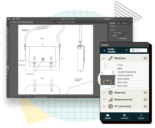 Transfer your technical sketches from Illustrator directly to Techpacker using the plugin. All changes will automatically sync for you. Avoid wasting a ton of time on formatting.